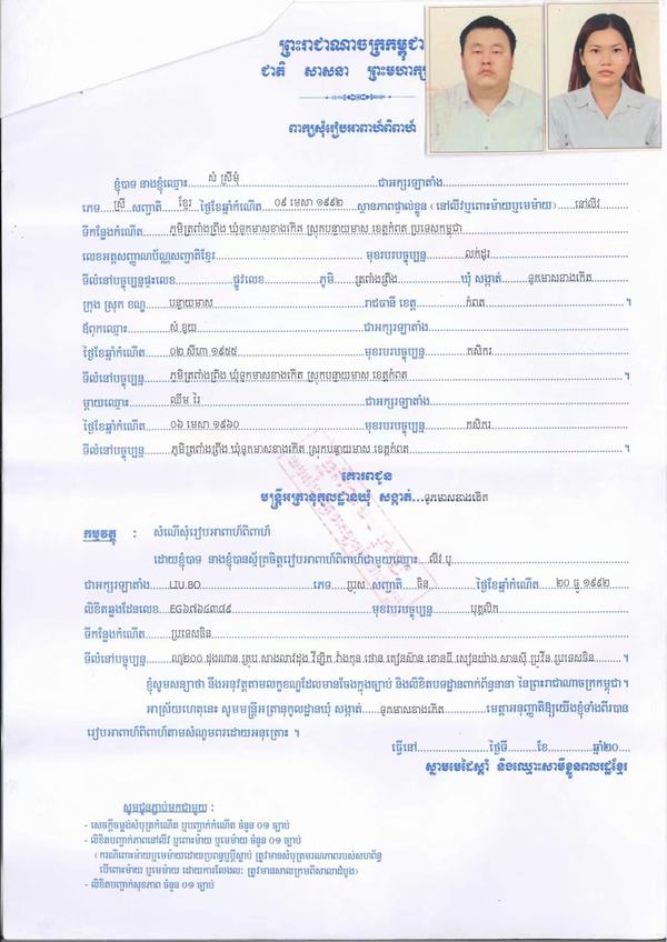 咸陽市證件專業翻譯/柬埔寨/緬甸/老撾/回國必備/柬埔寨結婚申請表翻譯模板