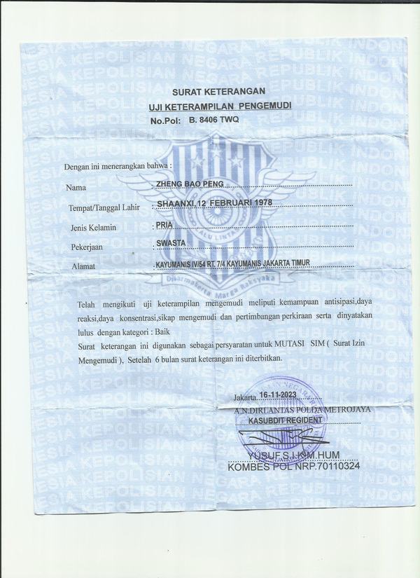 陜西阿博爾翻譯服務/持境外機動車駕駛證換證/咸陽市政府翻譯/印度尼西亞駕照證明翻譯模板
