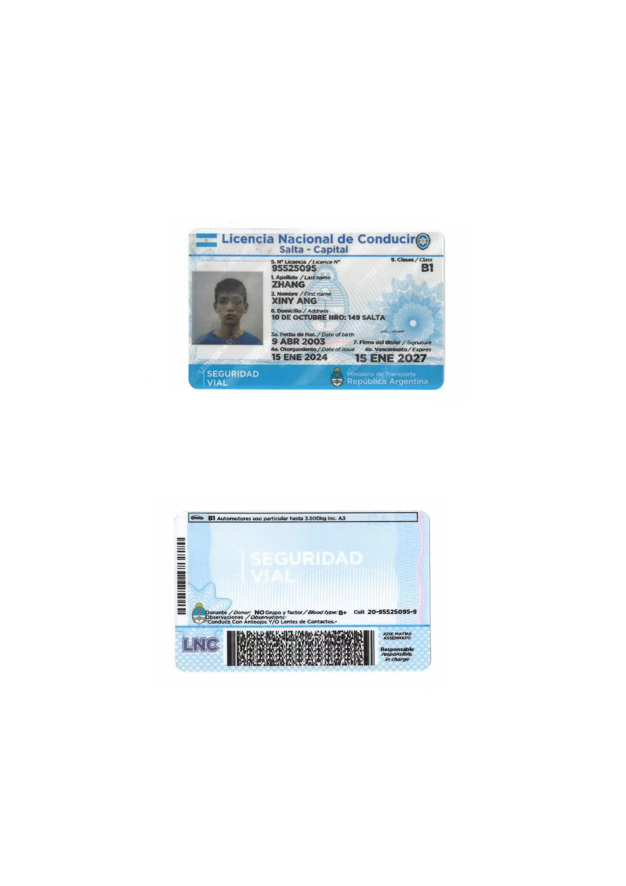 咸陽市證件翻譯蓋章/成績單翻譯/戶口薄翻譯/駕照翻譯-阿根廷駕照翻譯模版