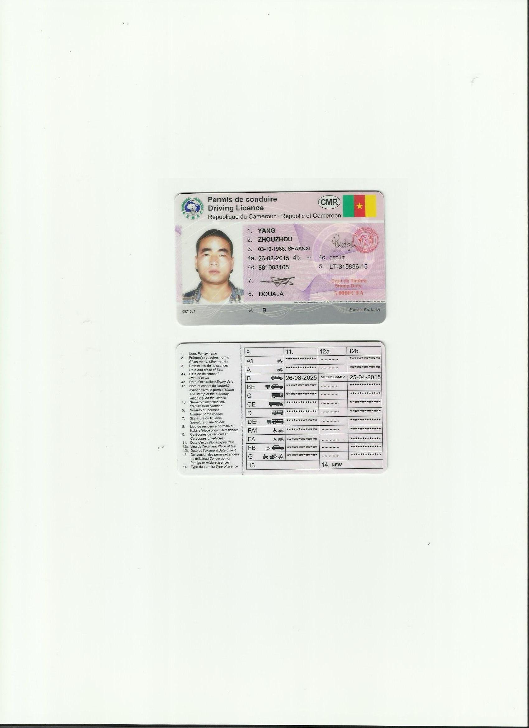 非洲國家喀麥隆駕照翻譯模版-咸陽車管所認可